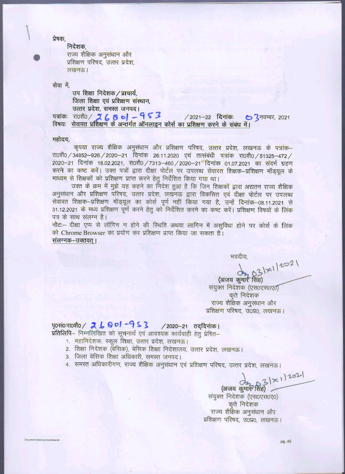सेवारत प्रशिक्षण के अन्तर्गत 15 ऑनलाइन कोर्स का प्रशिक्षण को पूर्ण करने की अवधि बढाई, जिन्होंने यह प्रशिक्षण पूर्ण नहीं किये हैं उन्हें 31 दिसम्बर तक पूर्ण करने होंगे 15 प्रशिक्षण