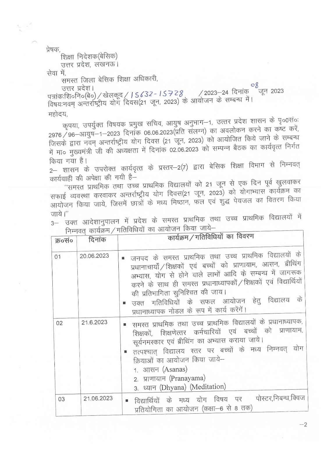 नवम् अन्तर्राष्ट्रीय योग दिवस (21 जून 2023) के आयोजन के सम्बन्ध में विस्तृत आदेश निर्देश जारी .