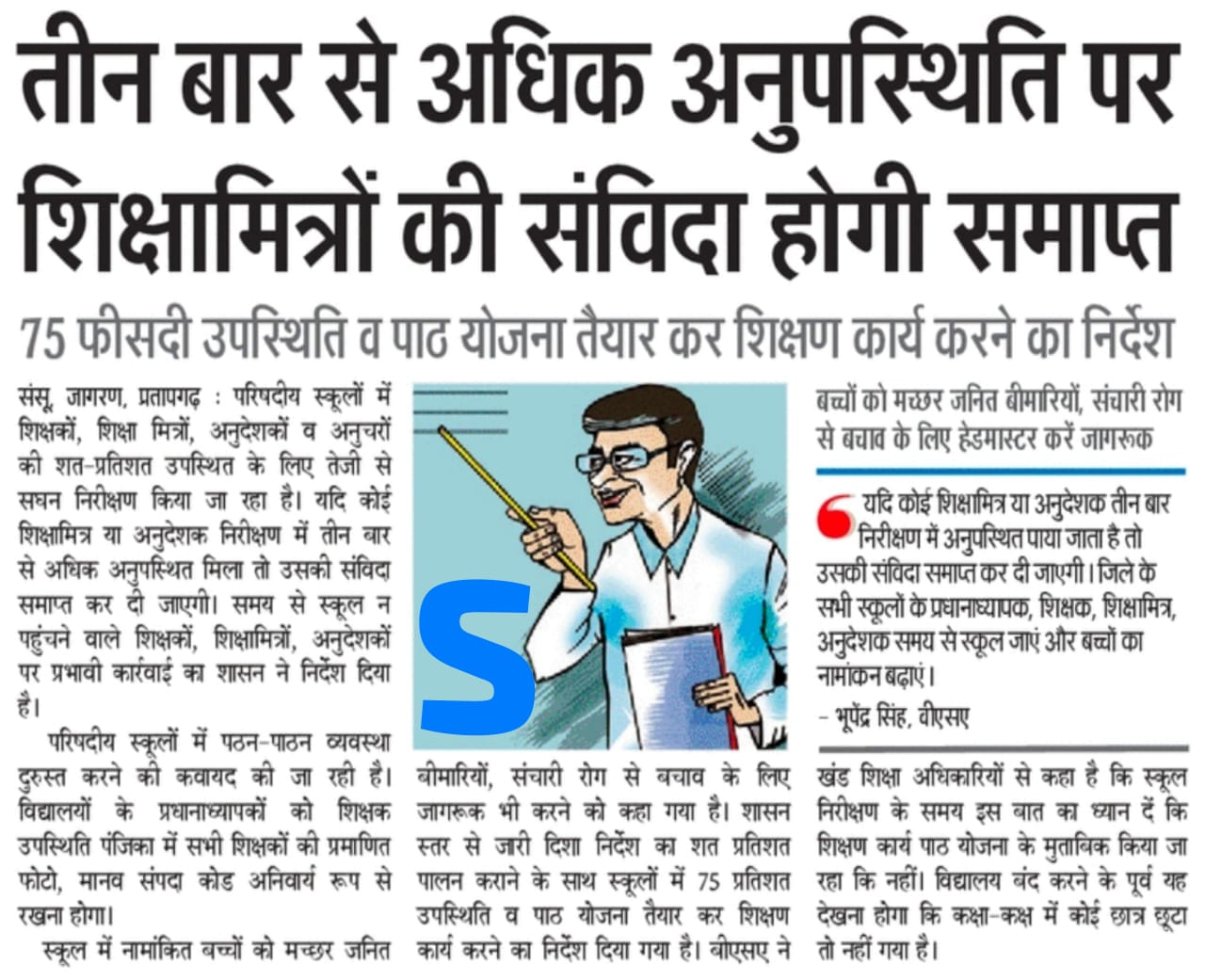 तीन बार से अधिक अनुपस्थिति पर शिक्षामित्रों की संविदा होगी समाप्त